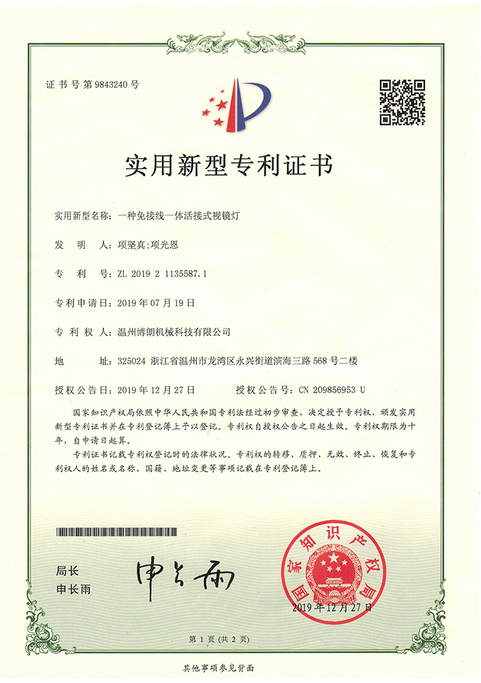 免接线一体活接式视镜灯