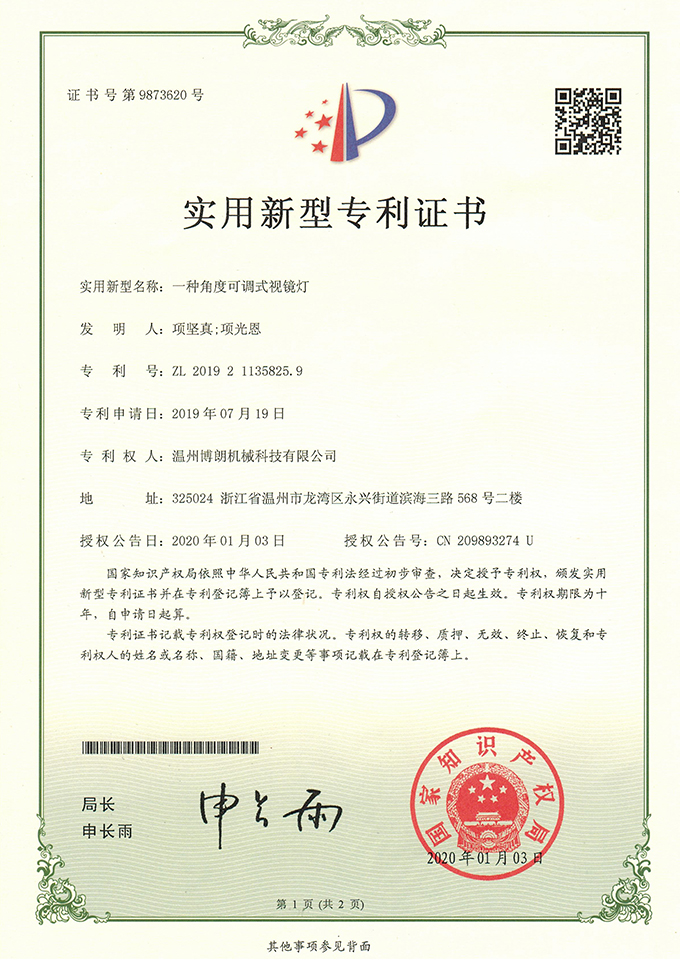 角度可调视镜灯专利