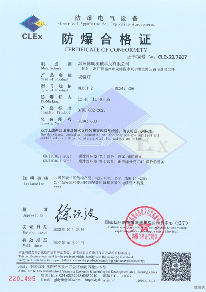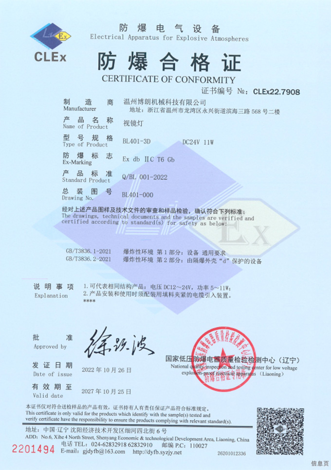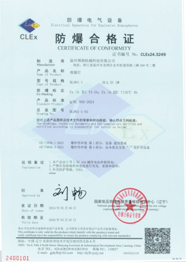 视镜灯防爆合格证